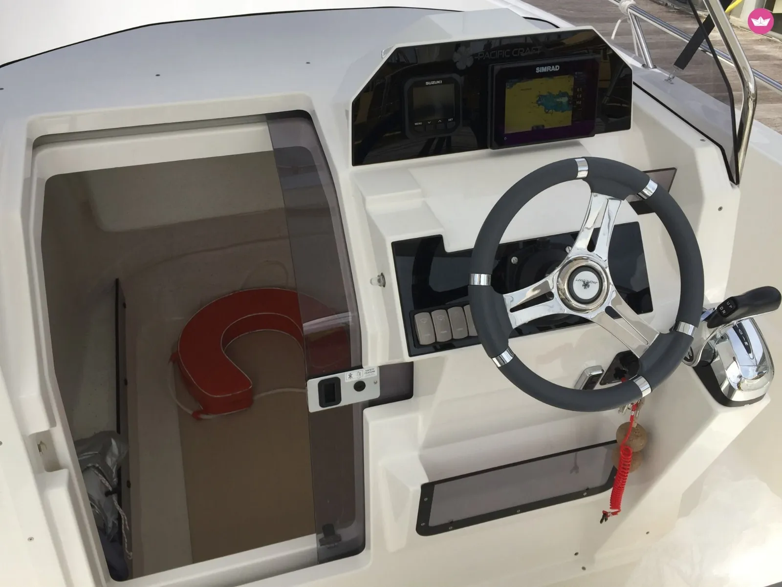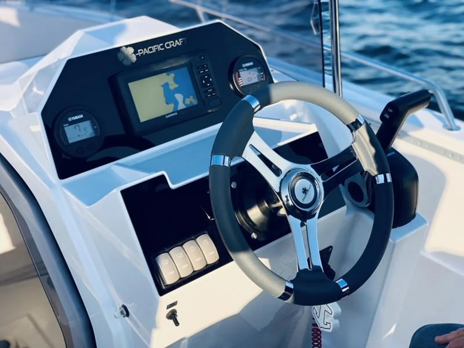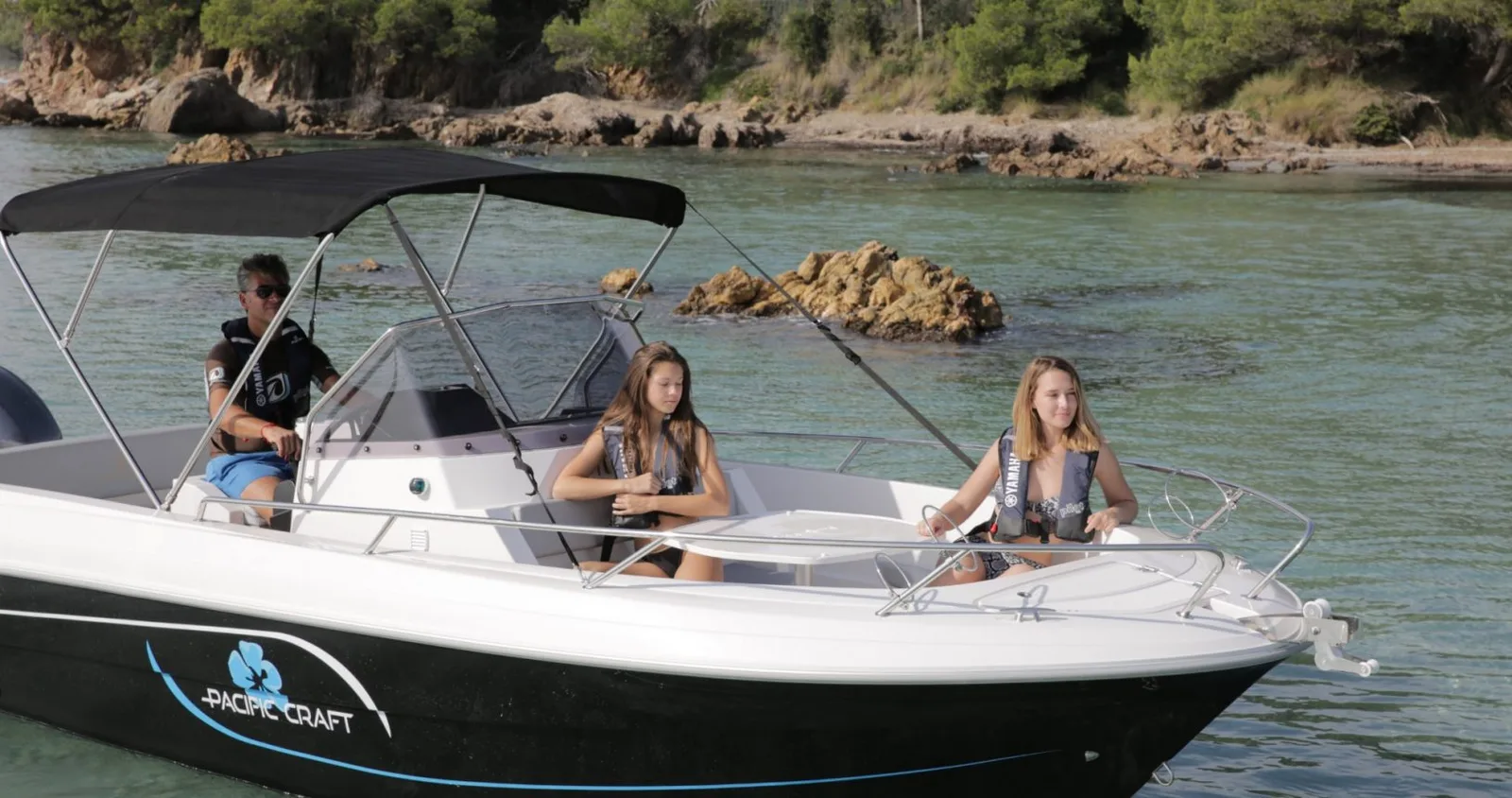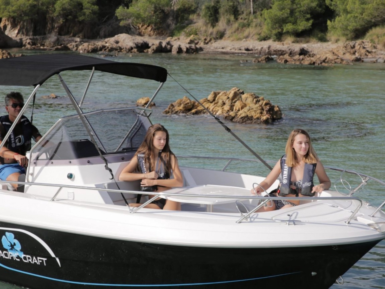 Sin duda, el modelo más completo de su categoría, cuenta con una buena zona de solarium en la proa, una cabina, amplias plataformas de baño con gran escalera y ducha de cubierta, así como un toldo bimini para protegerse del sol, un ancla con molinete eléctrico, una radio/bluetooth, y por supuesto todo el equipo de seguridad (chalecos salvavidas, bocina...).